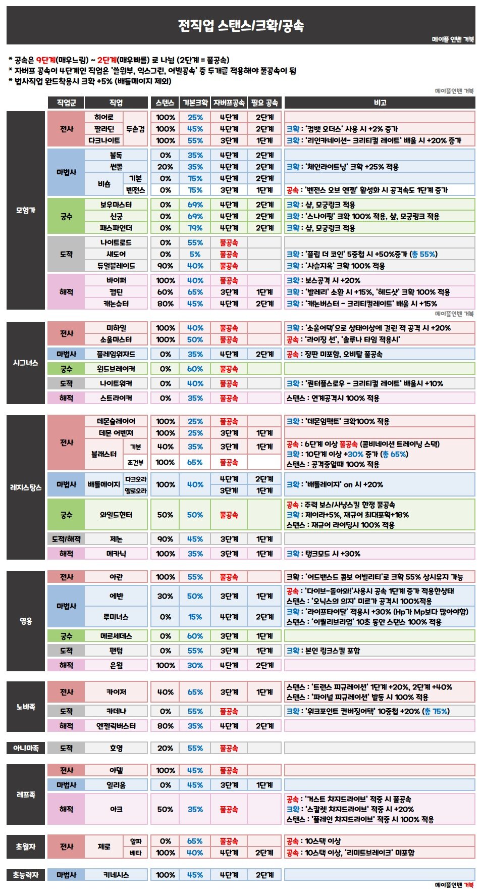 메이플 스토리 전직업 스탠스 / 크확 / 공속